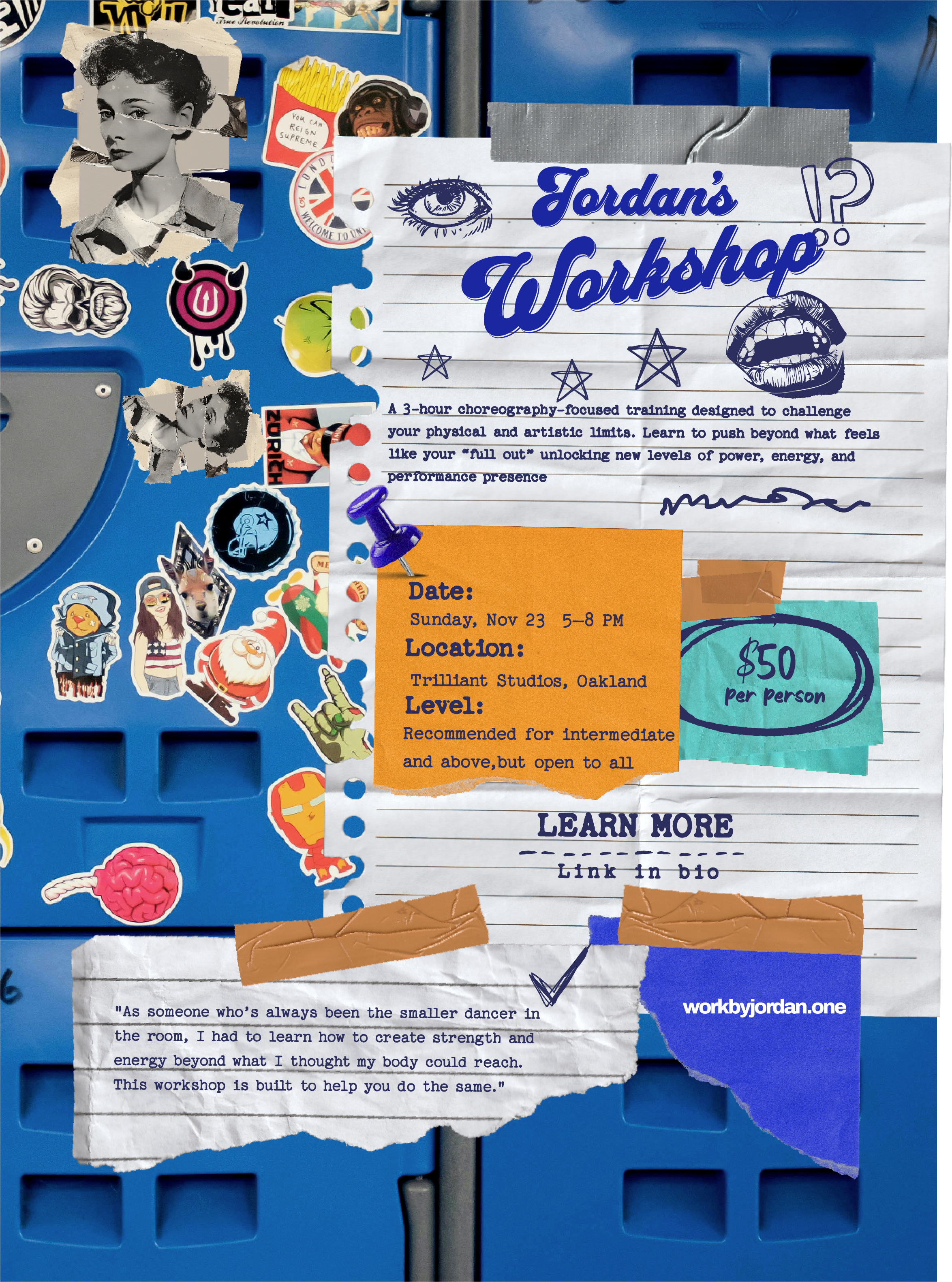 A 3-hour choreography training designed to push your physical and artistic limits. As someone who’s always been a smaller dancer, I learned to build strength and energy that transcends size. This workshop focuses on that. Through technical training, choreography, and guided journaling, we will also explore musicality, individuality, and character. Recommended for intermediate+, open to all levels.